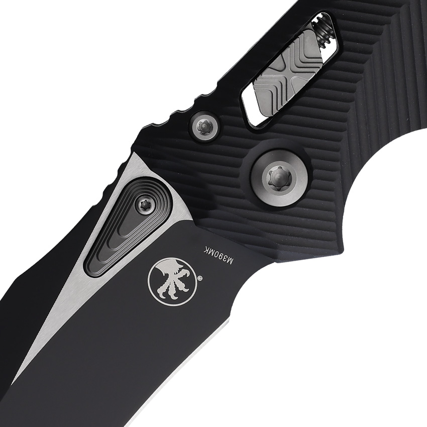 5.38″ (13.67cm) closed. 4″ (10.16cm) two-tone finish Bohler M390MK stainless blade. Black fluted aluminum handle. Pocket clip. Lanyard hole. Unique thumb stud opener with ball bearing pivot. Microtech item #137RL-1FL. Boxed.