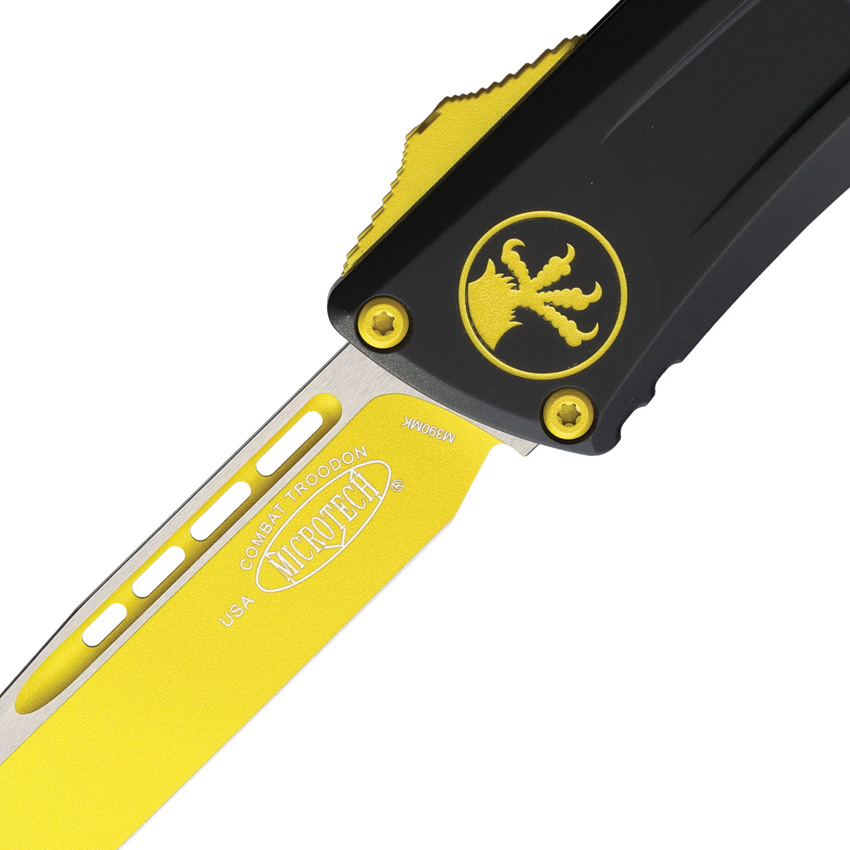 Automatic opening. 5.38″ (13.67cm) closed. 4″ (10.16cm) Bohler M390MK stainless blade. Black aluminum handle. Pocket clip. Lanyard hole. Glass breaker. Corvette yellow coated blade and accents. Boxed.