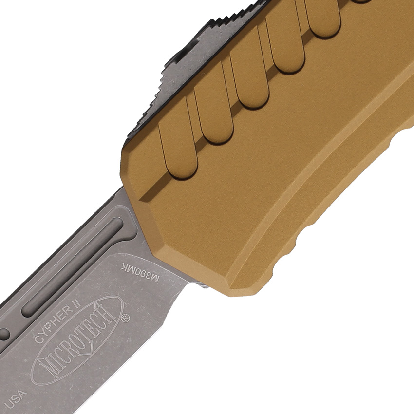 Microtech Cypher II S/E OTF Automatic Knife Tan Aluminum, a premium everyday carry knife designed for the discerning user. This knife is a testament to Microtech’s commitment to superior craftsmanship and functionality. Expect a knife that is as durable as it is stylish, with a blade that is ready for any task.