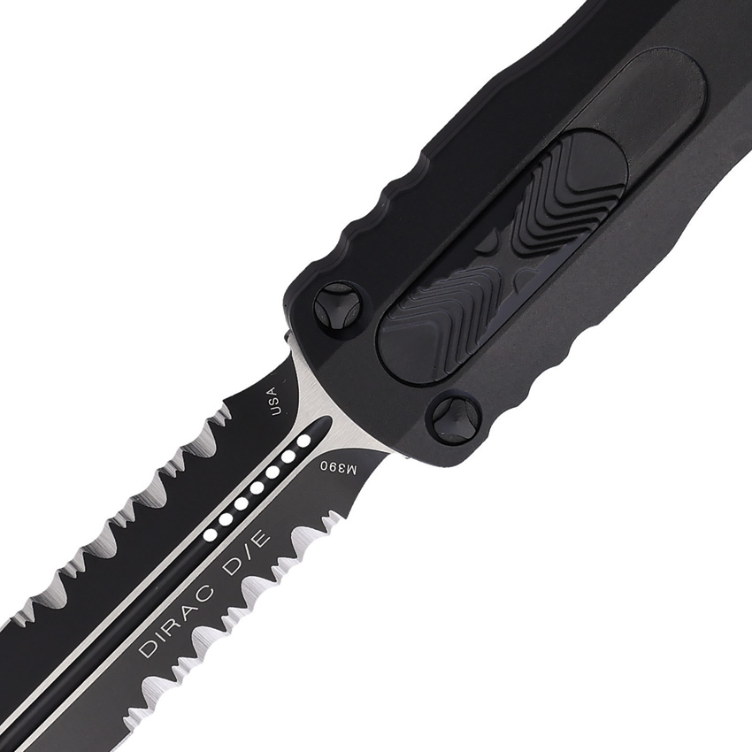 The Microtech Knives Auto Dirac D/E OTF Black is a compact knife with a closed length of 4.38″”. The 3″” blade is made from premium steel, offering excellent durability and sharpness. The blade is partially serrated and finished in black, adding to its overall aesthetic appeal.