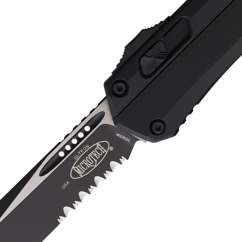 Summary + Microtech Glykon T/E OTF Automatic Knife Black Aluminum/Ti (3.75″” Two-Tone Serr)