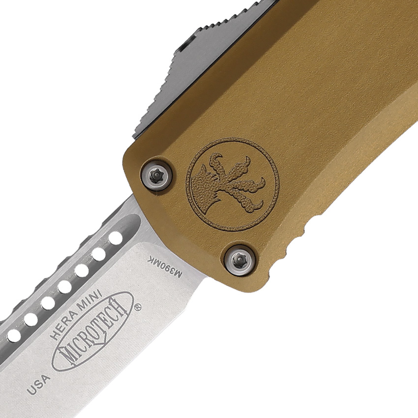 Automatic opening. 4″ (10.16cm) closed. 3″ (7.62cm) stonewash finish Bohler M390MK stainless blade. Tan aluminum handle. Pocket clip. Lanyard hole. Glass breaker. 30th anniversary edition. Boxed.
