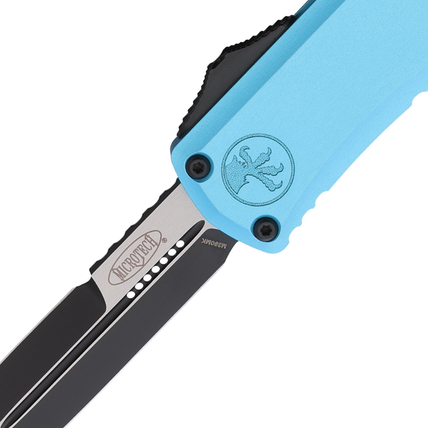The Microtech Knives Auto Hera II OTF Tq 30 features a 3″” (7.62cm) two-tone finish Bohler M390MK stainless blade, offering exceptional cutting performance. The knife’s turquoise aluminum handle is both stylish and durable, ensuring a comfortable grip during use. Additionally, the knife includes a pocket clip, lanyard hole, and glass breaker, enhancing its functionality and convenience.