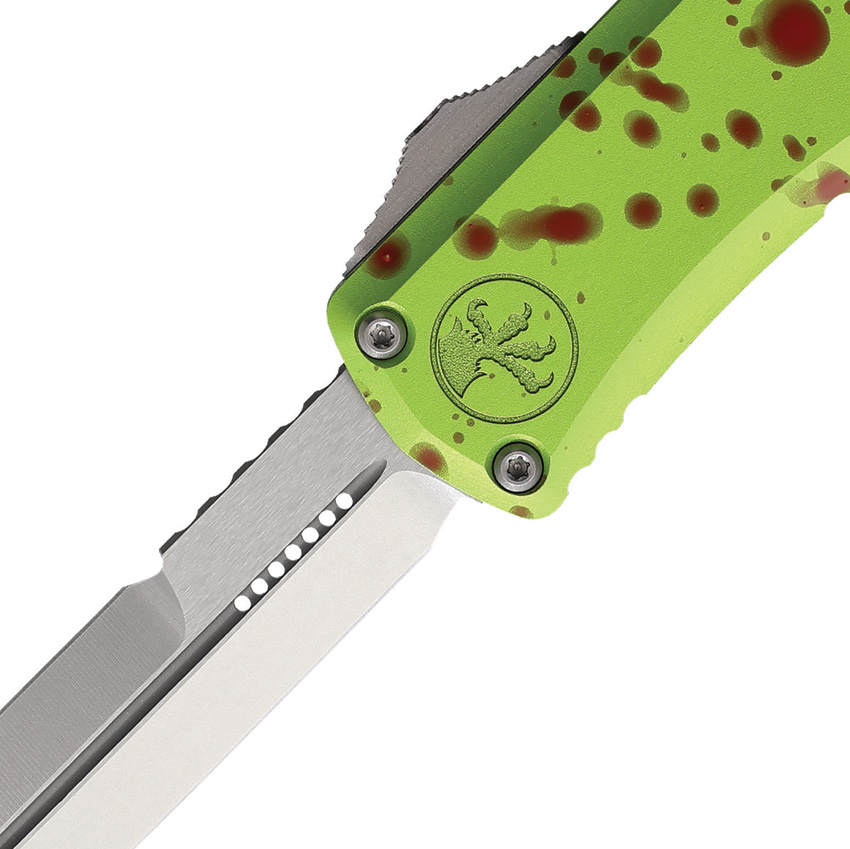 Automatic opening. 4″ (10.16cm) closed. 3″ (7.62cm) stonewash finish Bohler M390MK stainless blade. Aluminum handle. Pocket clip. Lanyard hole. Glass breaker. ZOMBIE-TECH handle. Bayonet style blade. Boxed.