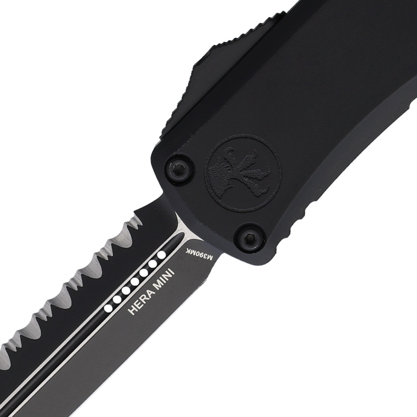 The Microtech Knives Auto Hera II Mini D/E OTF Black is a compact and powerful tool. The automatic opening mechanism ensures quick deployment, while the two-tone finish serrated Bohler M390MK stainless dagger blade delivers exceptional cutting performance. The black aluminum handle provides a secure and comfortable grip, enhancing the overall user experience.