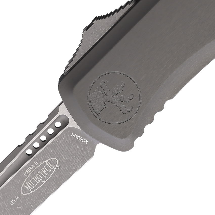 Microtech Knives Auto Hera II OTF Recurve AP, a premium automatic knife designed for the discerning user. Crafted with precision and attention to detail, this knife is a reliable tool for various tasks and a worthy addition to any collection. Expect superior performance and durability from this USA-made knife.