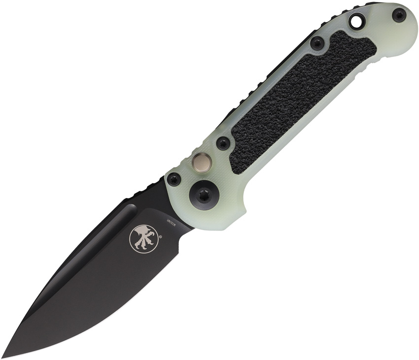 Automatic opening. 4.5″ (11.43cm) closed. 3.5″ (8.89cm) black finish Bohler M390MK stainless blade. Jade G10 handle with black traction insert. Lanyard hole. Pocket clip. Boxed.