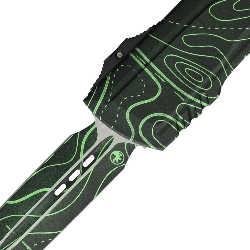 5″ (12.7cm) closed. 3.5″ (8.89cm) double edge Bohler M390MK stainless dagger blade. Aluminum handle. Glass breaker. Lanyard hole. Pocket clip. Topographic Night Ops blade and handle. Boxed.