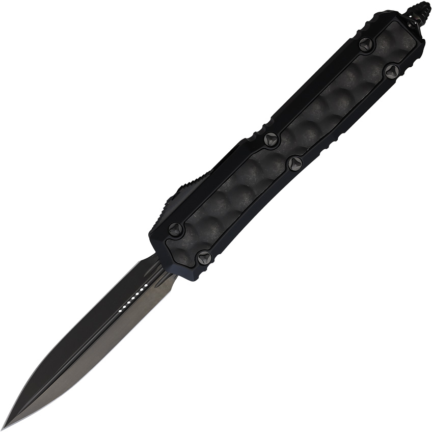 Automatic opening. 5.13″” (13.03cm) closed. 3.38″” (8.59cm) black DLC coated double edge stainless dagger blade. Black aluminum handle with Black DLC bubble aluminum insert. Glass breaker. Lanyard hole. Pocket clip. Nickel Boron internals. Boxed.