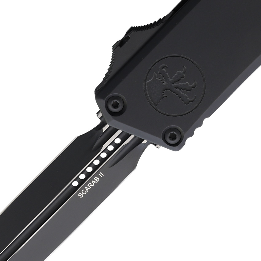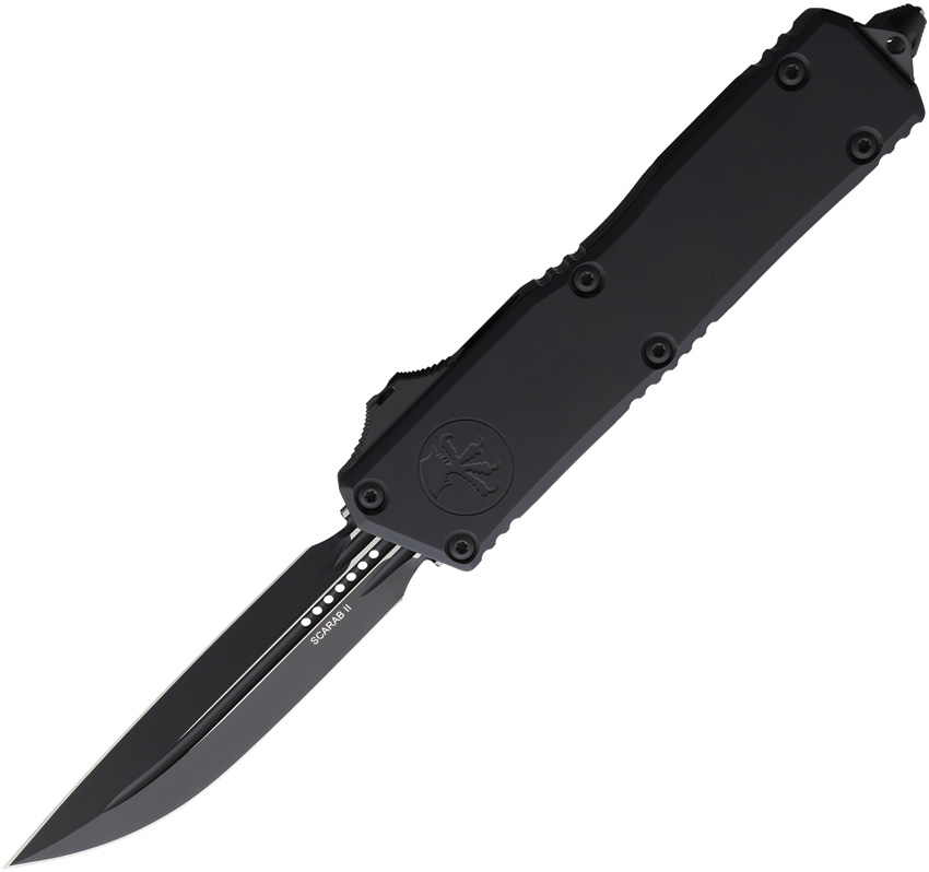 Automatic opening. 5.75″ (14.61cm) closed. 3.9″ (9.91cm) black finish double edge Bohler M390MK stainless blade. Black aluminum handle. Glass breaker. Lanyard hole. Pocket clip. Boxed.
