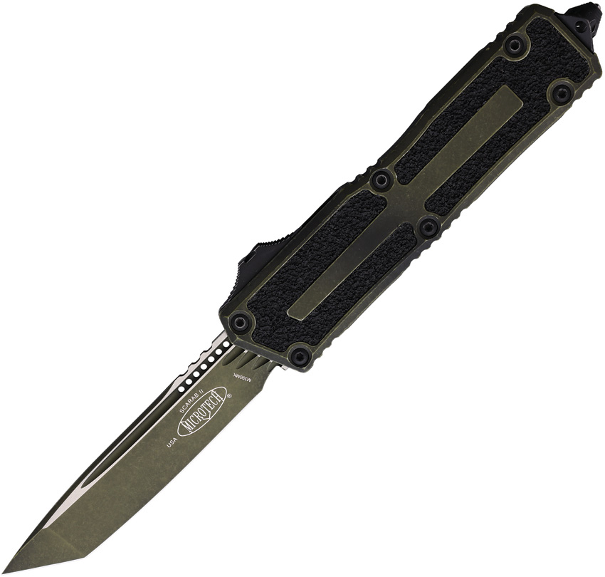 Automatic opening. 5.75″ (14.61cm) closed. 3.9″ (9.91cm) Bohler M390MK stainless tanto blade. Aluminum handle with black traction insert. Glass breaker. Lanyard hole. Pocket clip. Weathered Grenade Green blade and handle. Boxed.
