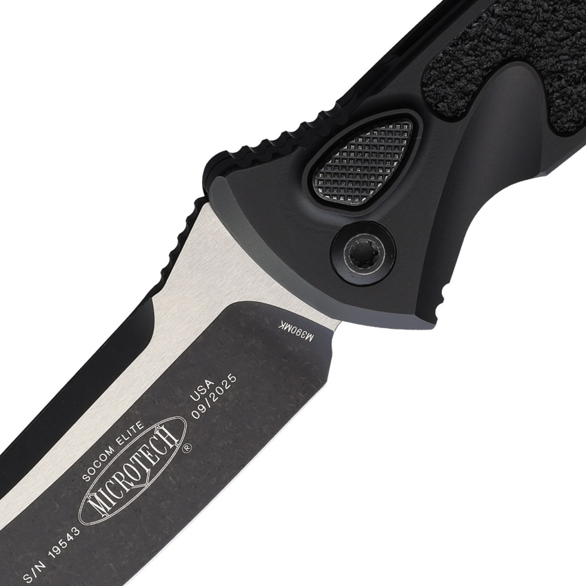 Automatic opening. 5.13″ (13.03cm) closed. 4″ (10.16cm) Apocalyptic finish premium steel blade. Black aluminum handle with black traction insert. Thumb stud. Lanyard hole. Glass breaker. Pocket clip. Boxed.