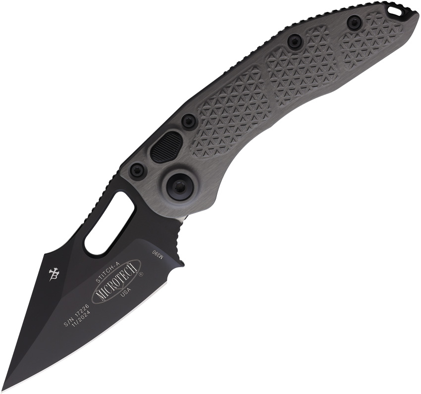 The Microtech Knives Auto Stitch S/E Button Lock SW features a 3.75″” black finish premium steel Wharncliffe blade that offers excellent cutting performance. The knife has a closed length of 5″”, making it compact and easy to carry. The handle is made of gray aluminum, providing a solid grip and enhancing the knife’s overall durability.