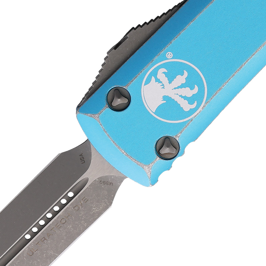 Microtech Knives Auto Ultratech D/E OTF Distres, a high-performance automatic knife designed for precision, durability, and ease of use. This knife is a testament to Microtech’s commitment to design excellence and innovation, offering a unique blend of style and functionality that sets it apart from the competition.