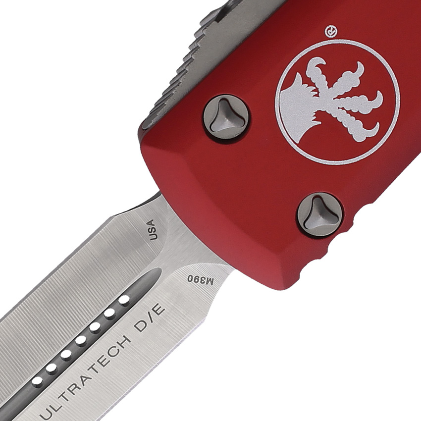 Microtech Ultratech D/E OTF Automatic Knife, a high-performance tool designed for everyday carry. This knife is a testament to Microtech’s commitment to design excellence and functionality. Its red anodized 6061-T6 aluminum handle and double-edged dagger blade with a satin finish make it a standout piece in any collection.