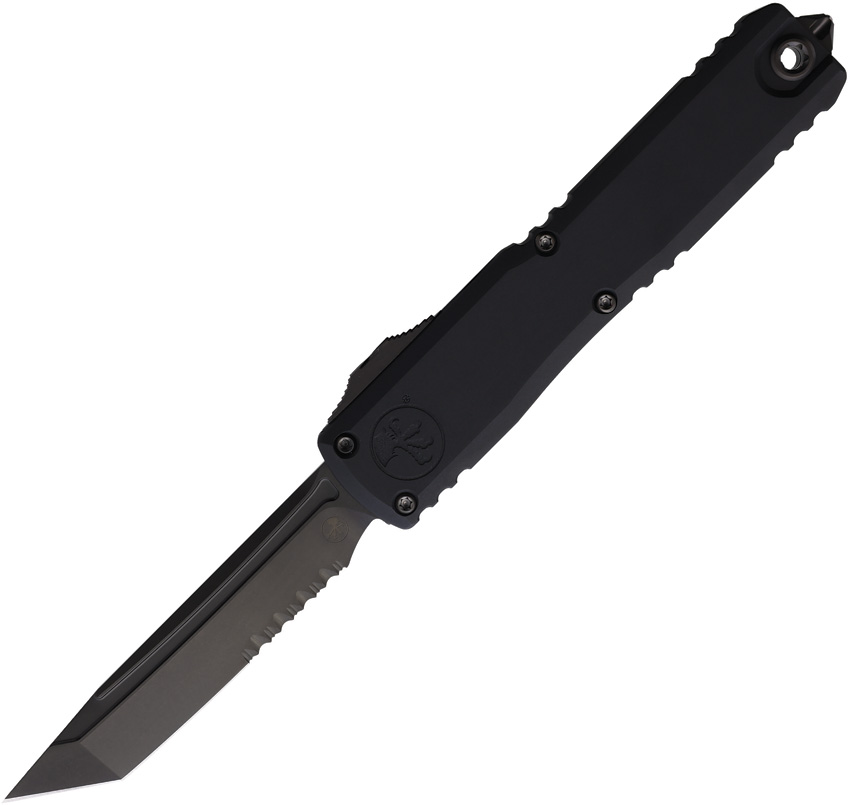 Automatic opening. 5″ (12.7cm) closed. 3.5″ (8.89cm) black DLC coated partially serrated Bohler M390MK stainless tanto blade. Black Shadow aluminum handle. Glass breaker. Lanyard hole. Pocket clip. Boxed.