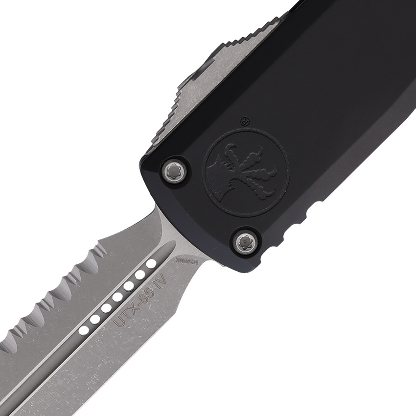 Automatic opening. 4.5″ (11.43cm) closed. 3.13″ (7.95cm) Apocalyptic finish serrated Bohler M390MK stainless dagger blade. Black aluminum handle. Glass breaker. Lanyard hole. Pocket clip. Double edge blade. Boxed.