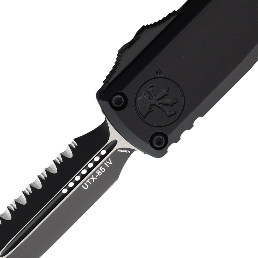 Automatic opening. 4.5″ (11.43cm) closed. 3.13″ (7.95cm) two-tone finish serrated Bohler M390MK stainless dagger blade. Black aluminum handle. Glass breaker. Lanyard hole. Pocket clip. Boxed.