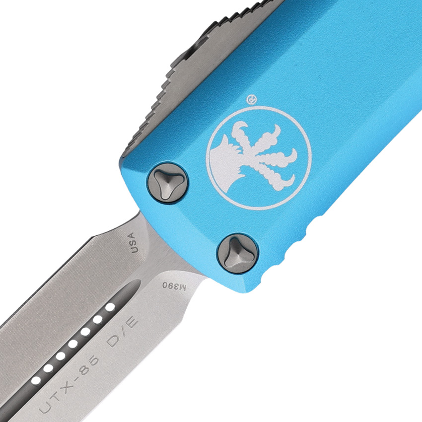 Microtech Knives Auto UTX-85 D/E OTF Turquoise, a premium automatic knife designed for precision and durability. This USA-made knife is a testament to superior craftsmanship, offering a perfect blend of functionality and style.