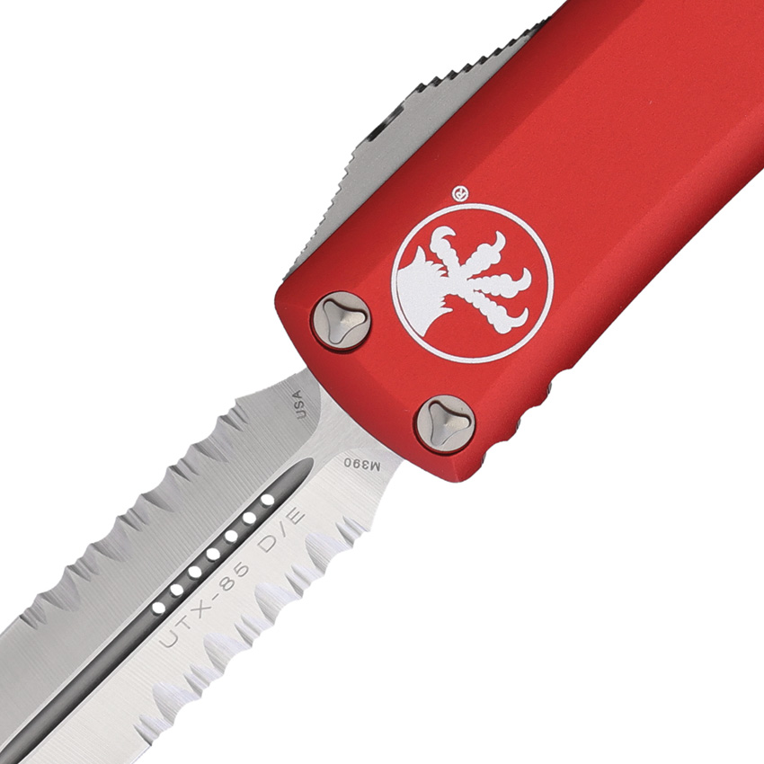 Microtech Knives Auto UTX-85 D/E OTF PS Red, a premium automatic knife designed for precision and durability. This USA-made knife is a reliable tool for everyday carry or outdoor adventures, offering a robust build and high-quality materials.