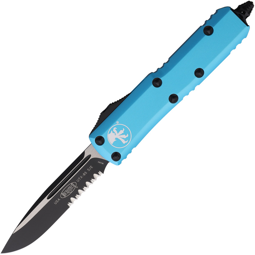 Summary + Microtech UTX-85 S/E OTF Automatic Knife Turquoise (3.125″” Black Serr) 231-2TQ