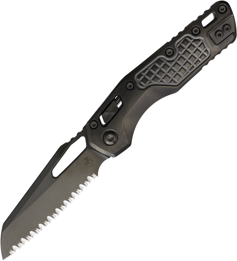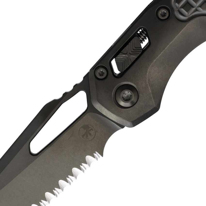 5″ (12.7cm) closed. 3.75″ (9.53cm) black DLC coated serrated Bohler M390MK stainless sheepsfoot blade. Stonewash DLC coated titanium handle. Pocket clip. Thumb pull. Lanyard hole. Marfione Select. Frag pattern handle. DLC titanium and DLC double blast vapor stainless accents. Boxed.
