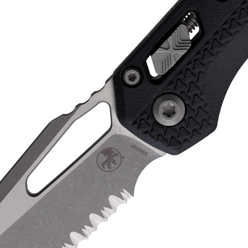 5″” (12.7cm) closed. 3.75″” (9.53cm) Apocalyptic finish serrated Bohler M390MK stainless sheepsfoot blade. Black Tri-Grip polymer handle. Thumb pull. Lanyard hole. Pocket clip. Boxed.