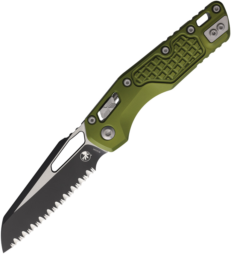 5″” (12.7cm) closed. 3.75″” (9.53cm) two-tone finish serrated Bohler M390MK stainless sheepsfoot blade. OD green frag pattern aluminum handle. Thumb pull. Lanyard hole. Pocket clip. Boxed.