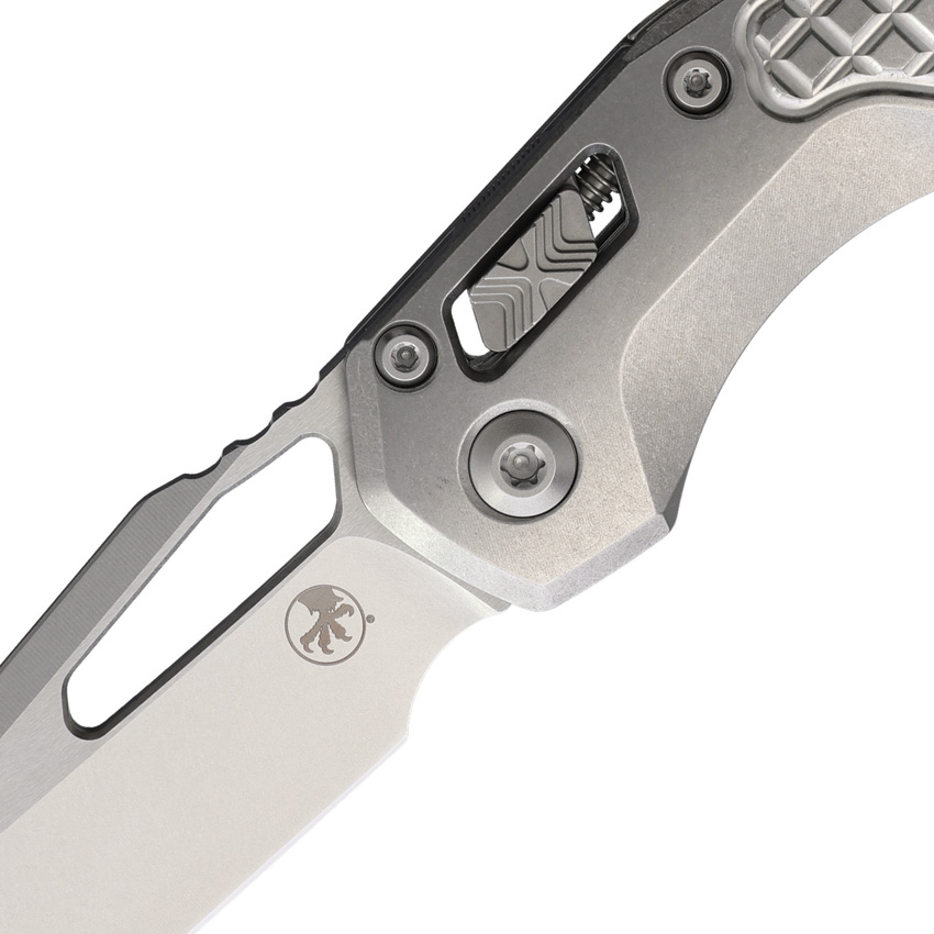 5″ (12.7cm) closed. 3.75″ (9.53cm) stonewash finish Bohler M390MK stainless sheepsfoot blade. Stonewash frag pattern titanium handle. Thumb pull. Lanyard hole. Pocket clip. Marfione Select. Blue titanium and double blast vapor stainless accents. Boxed.