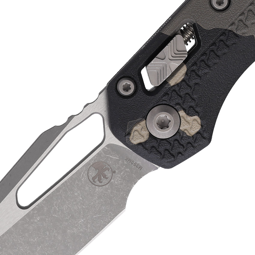 5″ (12.7cm) closed. 3.75″ (9.53cm) Apocalyptic finish Bohler M390MK stainless sheepsfoot blade. Tactical camo Tri-Grip polymer handle. Thumb pull. Lanyard hole. Pocket clip. Boxed.