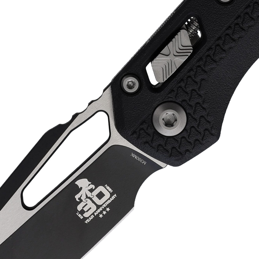 5″ (12.7cm) closed. 3.75″ (9.53cm) two-tone finish Bohler M390MK stainless sheepsfoot blade. Black Tri-Grip polymer handle. Thumb pull. Lanyard hole. Pocket clip. 30th anniversary edition. Boxed.