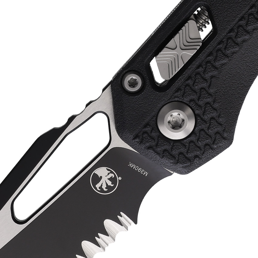 The MSI Ram-Lok Knife is part of Microtech’s latest generation of folding pocket knives. It boasts a two-tone sheepsfoot blade made from Bohler M390MK steel, offering unparalleled edge retention and corrosion resistance. The handle is made from black injection molded polymer with Tri-Grip texturing, ensuring a firm grip in any condition. The knife also features Microtech’s Ram-Lok for maximum lockup and strength, ensuring your safety during use.