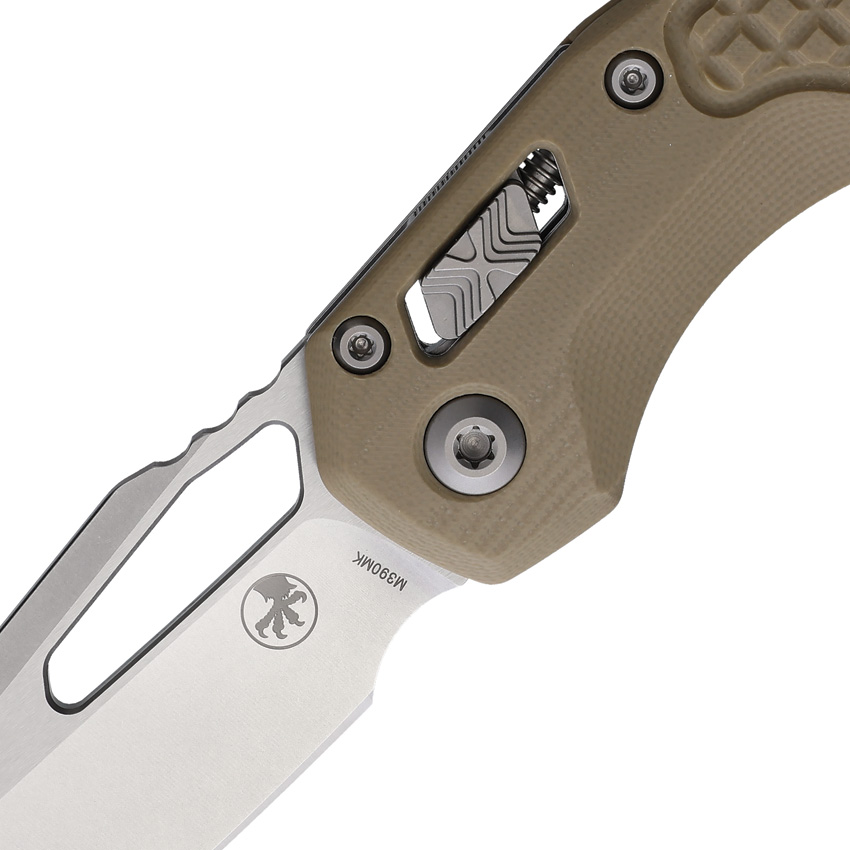 5″” (12.7cm) closed. 3.75″” (9.53cm) stonewash finish Bohler M390MK stainless blade. Tan frag pattern G10 handle. Thumb pull. Lanyard hole. Pocket clip. Boxed.
