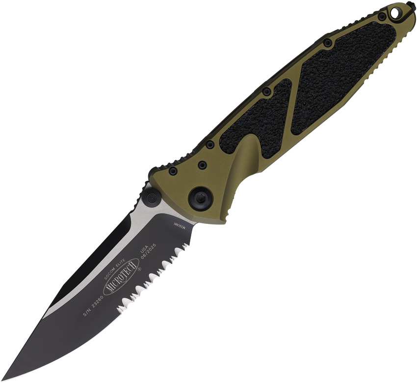 Summary + Microtech Socom Elite Manual Knife OD Green (4″” Black Serr) 160-2OD