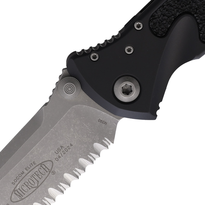 Microtech Socom Elite Manual Knife Black, a top-tier tactical tool designed for the most demanding environments. This knife, with its 4″” Apocalyptic Serrated blade, is a testament to Microtech’s commitment to quality and durability. It’s a robust tool, ready to tackle any task with precision and reliability.