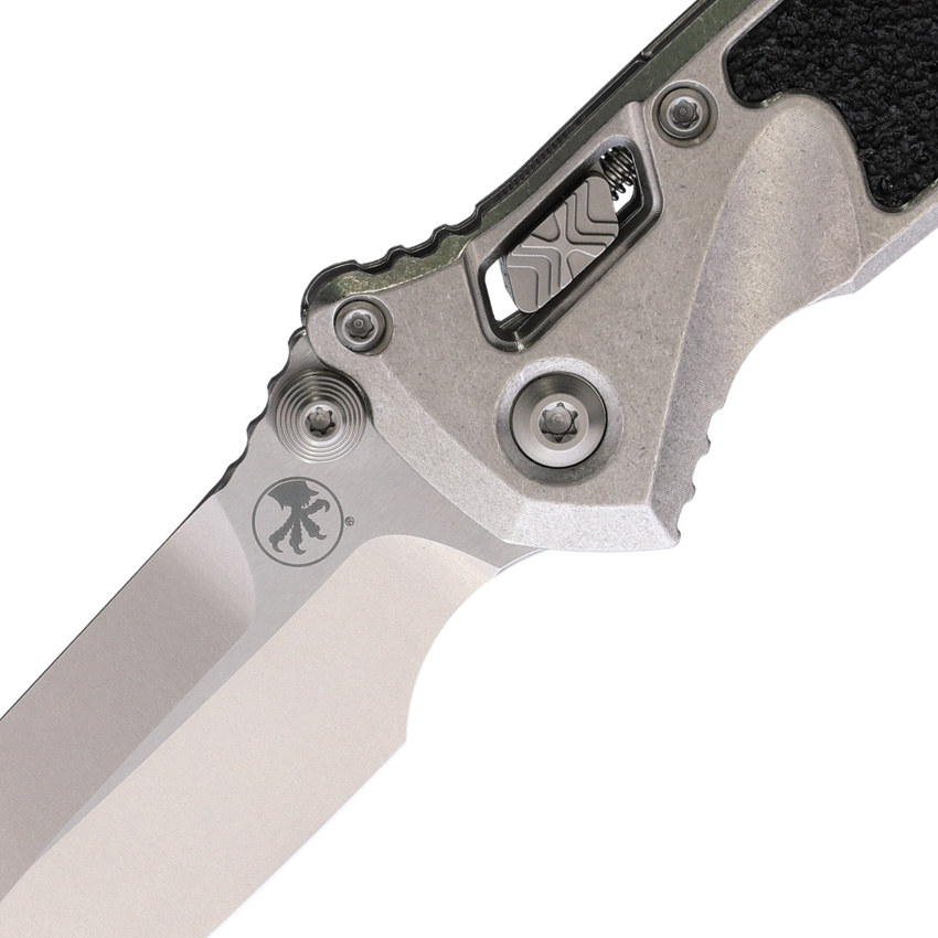 5.25″ (13.34cm) closed. 4″ (10.16cm) stonewash finish Bohler M390MK stainless spear point blade. Stonewash titanium handle with black traction insert. Pocket clip. Glass breaker. Thumb stud. Marfione Select. Blue titanium and double vapor blast stainless accents. Boxed.