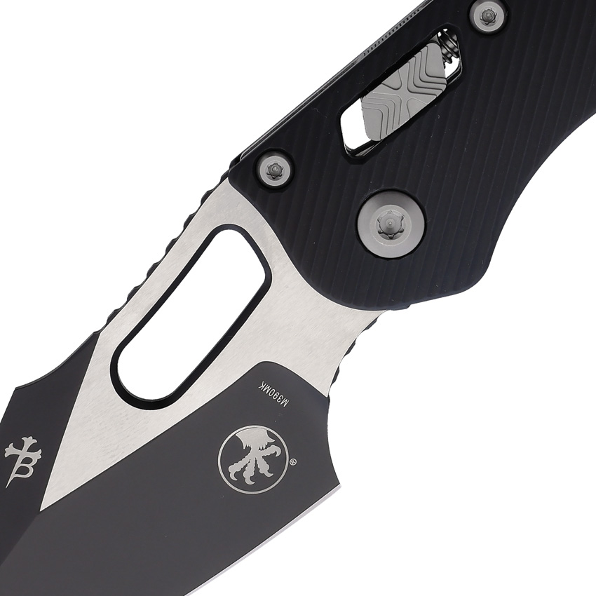 5″ (12.7cm) closed. 3.75″ (9.53cm) two-tone finish Bohler M390MK stainless blade. Black fluted aluminum handle. Microtech item #169RL-1FL. Boxed.