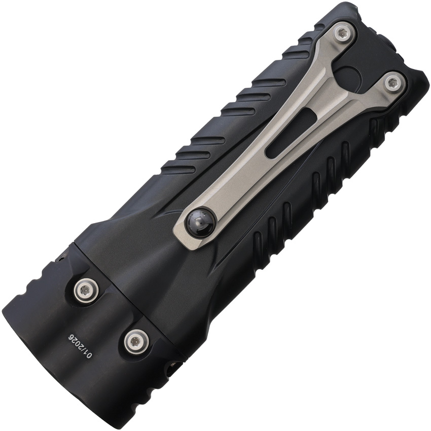 4.88″ overall. Rechargeable. Clip. Strobe. Water resistant. Impact resistant. Modes: High (1500 lumens, 1h runtime); Medium (500 lumens, 1.5h runtime); Low (25 lumens, 23.5h runtime). 375m beam distance. Requires (1) Lithium battery (included). Aluminum construction. Color: Bead blast. Boxed.