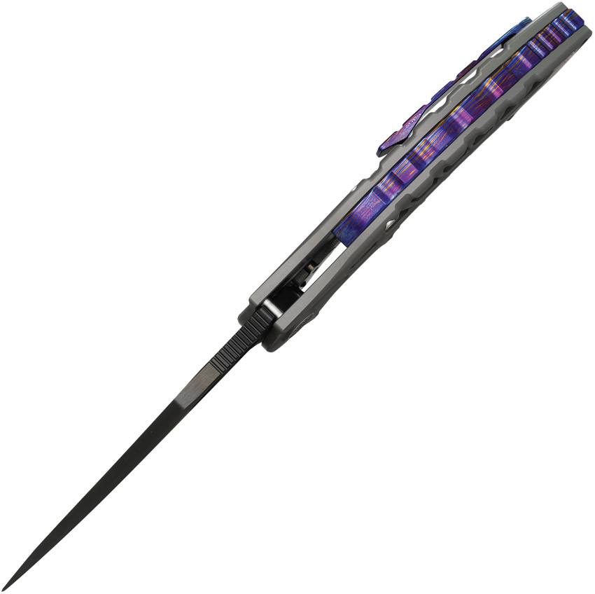 5″ (12.7cm) closed. 3.63″ (9.22cm) black satin finish Vanax steel clip point blade. Gray skeletonized titanium handle. Extended tang. Thumb pull. Lanyard hole. Pocket clip. Boxed.
