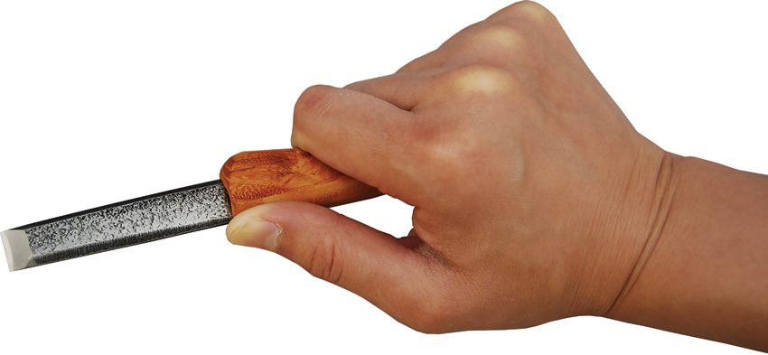 6.00″ (15.24cm) overall. 2.25″ (5.72cm) stainless blade. Wood handle. Hira single edge blade. Black leather sheath. Hang packaged.