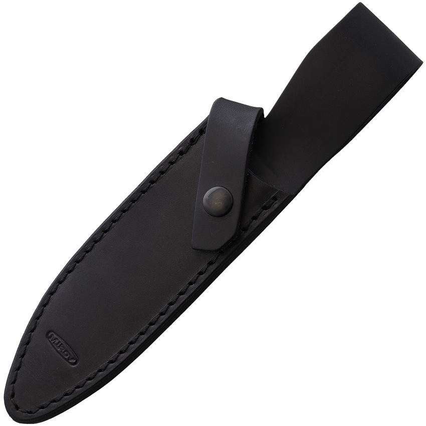 10″ (25.4cm) overall. 5.5″ (13.97cm) satin finish 440C stainless blade. Black rubber handle. Black leather belt sheath.