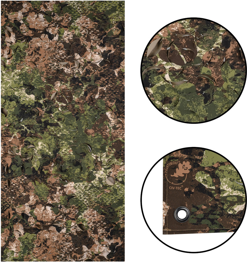 Dimensions: 60″ x 118″. Net with specially punched pattern. Can be used to camouflage equipment, as sun protection, or general cover. Metal eyelets for easy fastening. Outdoor use only. CIV-TEC WASP I Z3A camo. 100% Nylon (Taslan) construction. Bulk packed.