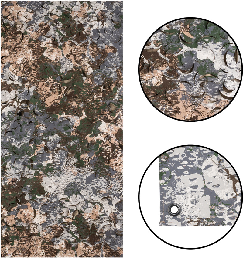 Dimensions: 60″ x 118″. Net with specially punched pattern. Can be used to camouflage equipment, as sun protection, or general cover. Metal eyelets for easy fastening. Outdoor use only. CIV-TEC WASP I Z1B camo. 100% Nylon (Taslan) construction. Bulk packed.