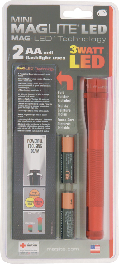 Red. 5 3/4″ overall. Aircraft grade aluminum body with an anodized finish. 3 watt LED. Balanced Optics provide a focusing LED, optimized to produce a powerful beam. Intelligent Energy Source Management. Interchangeable light sourcing. Black nylon belt holster. Hang packaged.