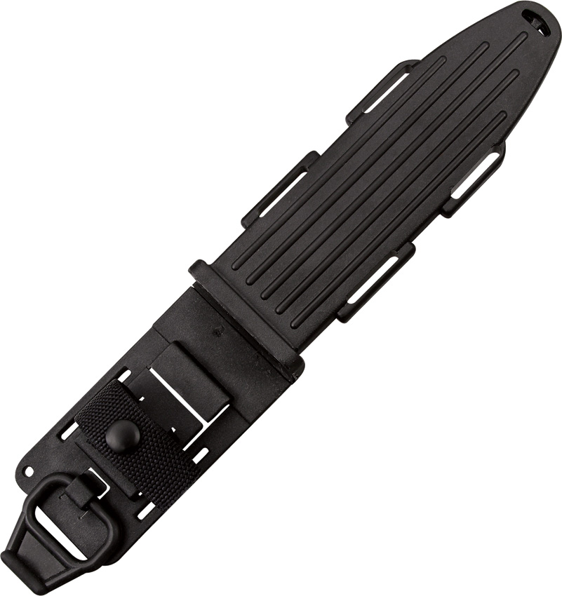 12″ overall. 7″ partially serrated titanium blade. Blade is .250″ thick and has superior wear resistance and should never rust or corrode. Black injection molded Hytrel handle with integrated finger guard. Lanyard hole. Designed with input and suggestions of U.S Marine Recon units and various United States Special Operations personnel which wanted a light weight, high strength, non-magnetic, corrosion proof tool with a more compact and thinner silhouette resulting in higher speed and lower drag coefficient than the U.S. Navy MPK. Custom low profile black Hytrel sheath. Sheath is designed to be worn on the leg or thigh.