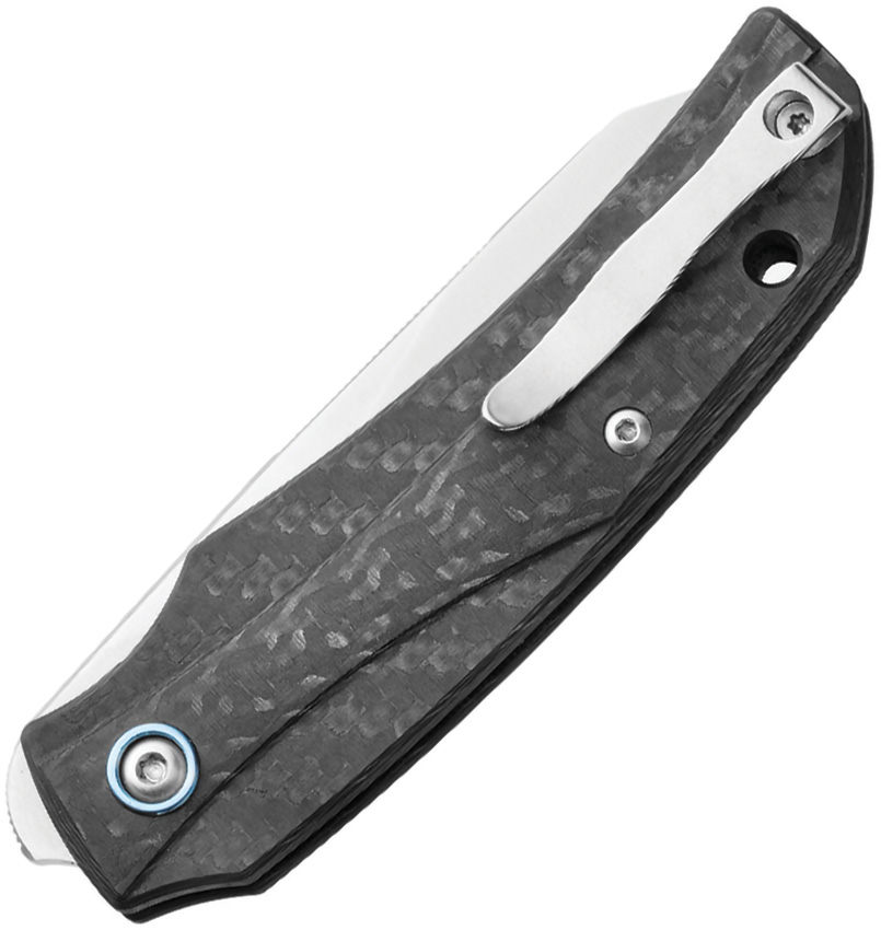 3.38″ (8.59cm) closed. 2.5″ (6.35cm) satin finish CPM MagnaCut stainless sheepsfoot blade. Carbon fiber handle. Extended tang. Lanyard hole. Pocket clip. Black nylon zippered storage case. Boxed.