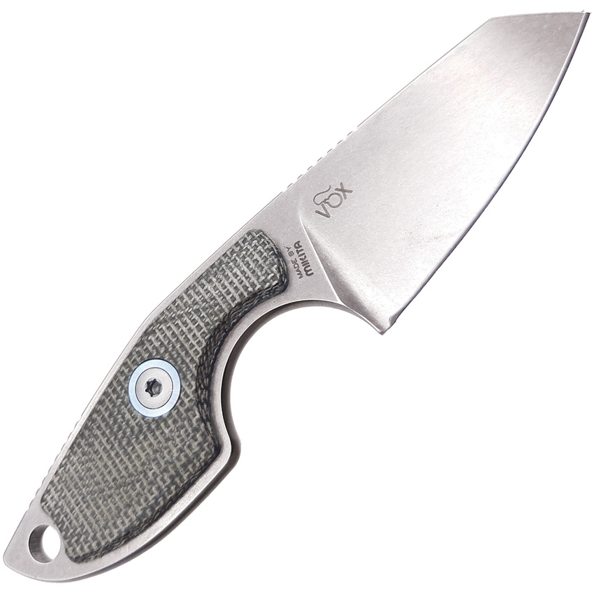 4.25″ (10.8cm) overall. 2″ (5.08cm) stonewash finish Bohler M390 stainless sheepsfoot blade. Green canvas micarta handle. Full, extended tang. Lanyard hole. Sheath features double magnetic closure to carry on neck with leather cord or in your pocket. Black leather sheath. Boxed.