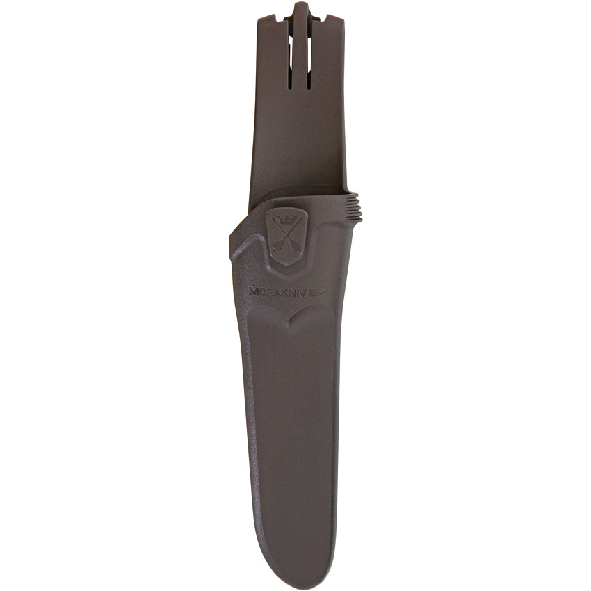 8 1/4″ overall. 3 5/8″ stainless blade. Tan polypropylene handle with gray rubberized overmold. Gray molded plastic belt sheath with drain hole. Bulk packed.