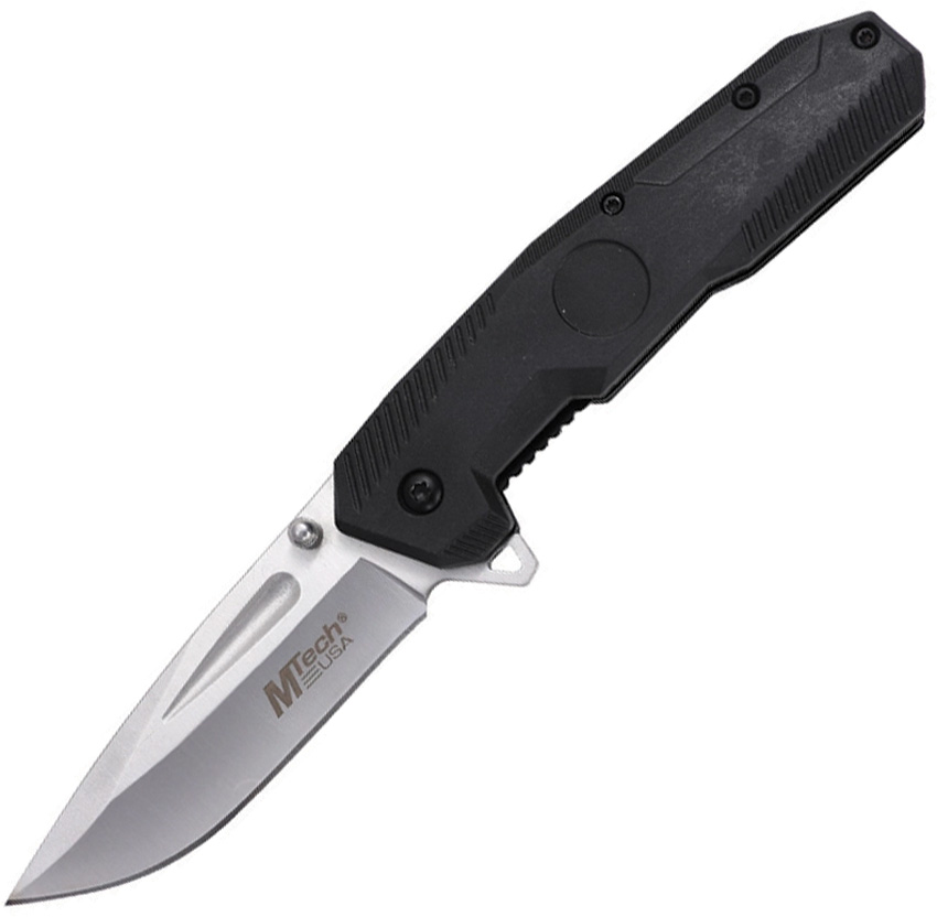 Assisted opening. 4.63″ (11.76cm) closed. 3.25″ (8.26cm) satin finish 3Cr13MoV stainless drop point blade. Black nylon handle. Extended tang. Pocket clip. Thumb pull. Boxed.