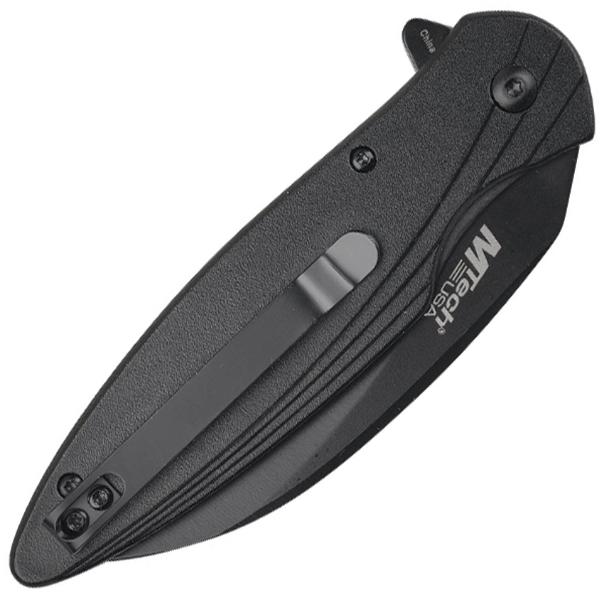 Assisted opening. 4.5″ (11.43cm) closed. 3.38″ (8.59cm) black finish 3Cr13MoV stainless curved blade. Black aluminum handle with brown wood onlay. Extended tang. Pocket clip. Boxed.